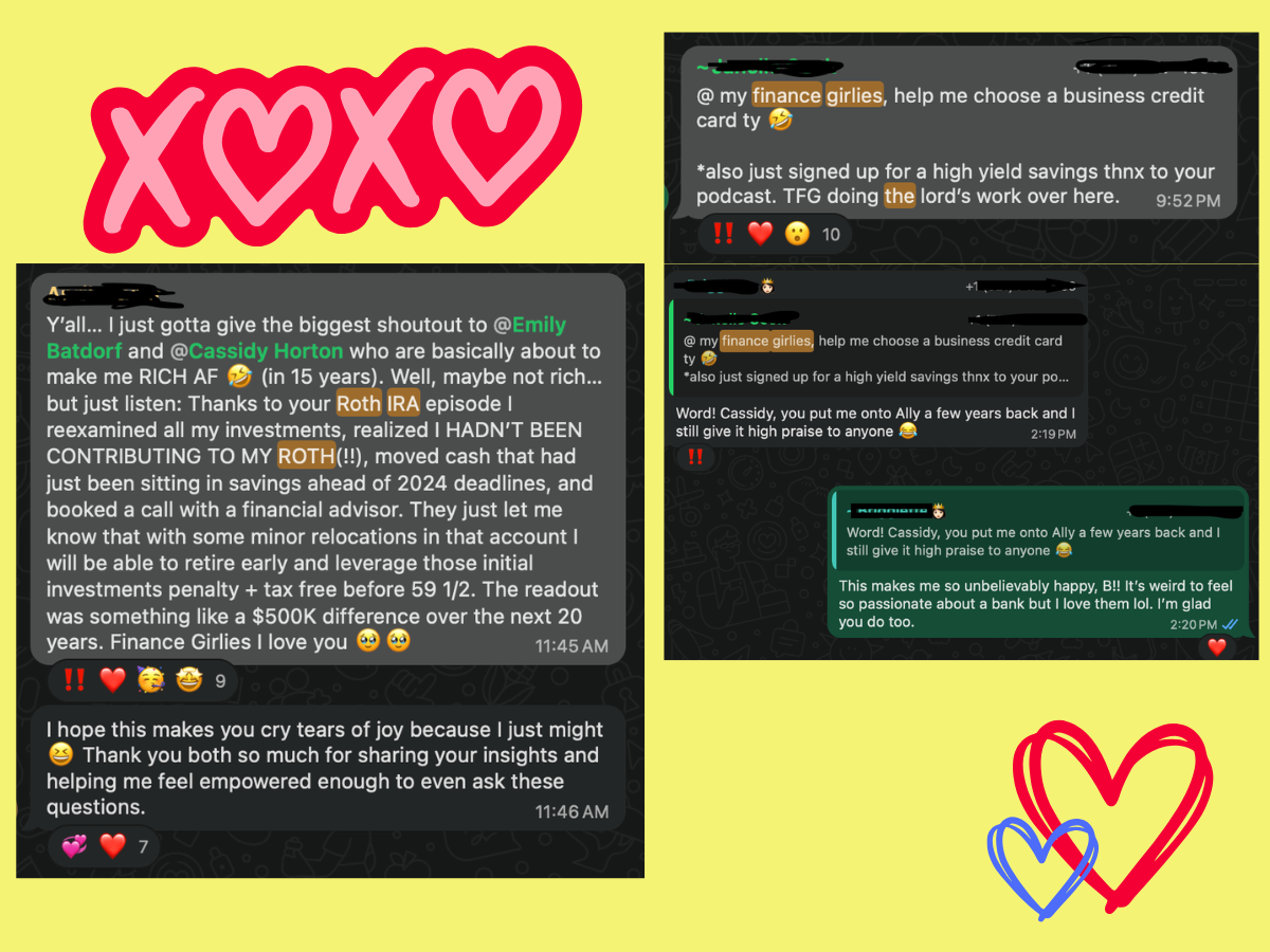 We’re Emily and Cassidy — writers, researchers, podcast hosts, and longtime money nerds who became real-life best friends after meeting in an online writing course.