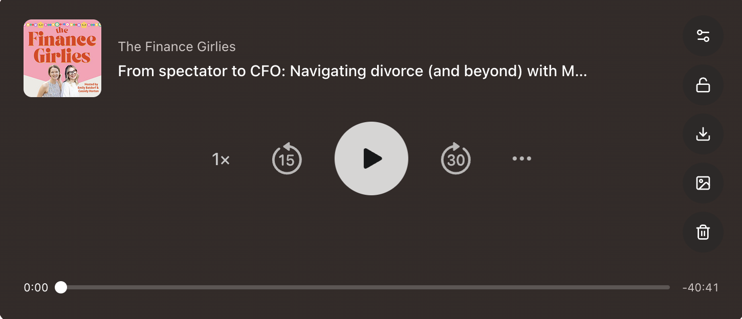 Cassidy: Hey, girlies. Today we're diving into a topic that's incredibly important and let's be honest, a little emotional, and [00:01:00] that is the financial side of divorce. So whether you're contemplating divorce, in the thick of it, or just supporting a friend through it, we know how overwhelming money can feel during a big life transition like this.